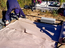 Закрываем территорию участка геотекстилем, тем самым решая проблему с сорной травой.