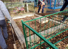 После замеров мы приступили к демонтажу, и для начала удалили бетонный цветник, находящийся у подножья памятника.